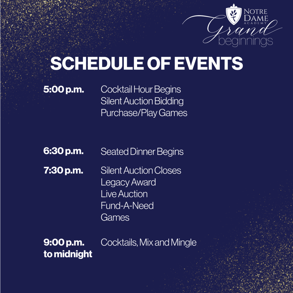 More than a fundraiser, Grand Beginnings is an opportunity to support the school’s educational needs, both in classrooms and in various auxiliary areas. By attending the event you are helping decrease tuition costs, update our classrooms, provide healthy lunches for all students, and meet a host of needs for students and teachers alike. Grand Beginnings has traditionally been one of NDA’s larger fundraisers, and our largest community event.