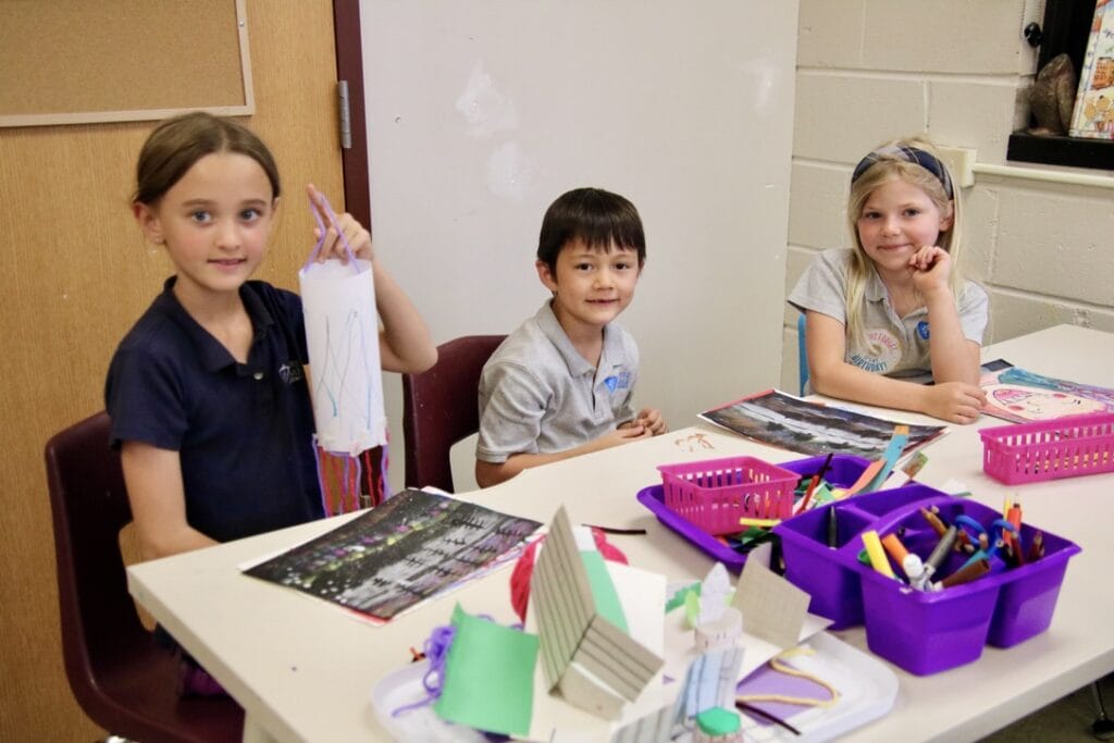 Our art program offers a variety of media for students throughout their kindergarten through eighth grade experiences including clay, paint, recycled materials and a distinctive integration of classroom subjects.