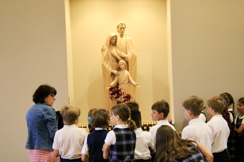 Additionally, students attend Adoration once a month, pray the rosary several times during the school year and participate in Stations of the Cross during Lent.