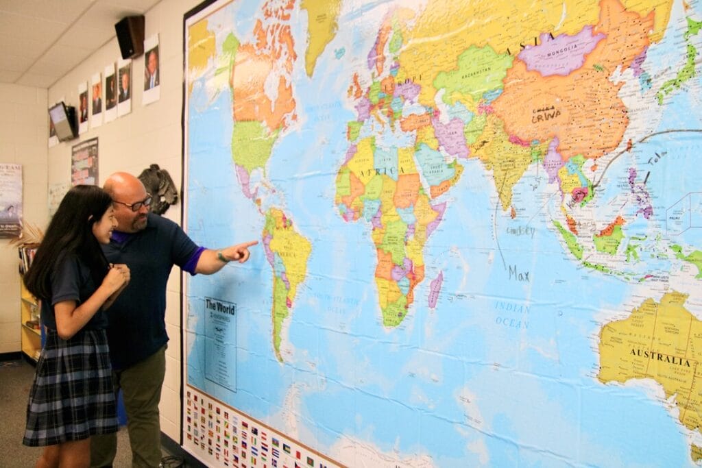 As students move into middle school, they are taught the four main strands of social studies including Citizenship and Government, Economics, Geography, and History. Students also learn about the geography of our state, the United States, and the world with the support of the Northern Lights text from the Minnesota Historical Society and the Houghton Mifflin Harcourt United States and World Geography texts.