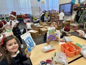 Once the Polar Express arrives at the station, the Kindergartners get off the train and are greeted by traditional Christmas carols from the country and a new stamp in their passports. Excited to explore the area, there are giggles and glee as the class settles in to listen to a story about the country. This ranges from Hannah’s Christmas, which teaches the Kindergartners about the Swedish folklore of tomtens and highlights St. Lucia Day, to Wombat Divine, a story about a nativity pageant put on by a group of Australian animals. Over the years, the Kindergartners have visited Mexico, England, Iceland, Australia, Italy, and even the North Pole!